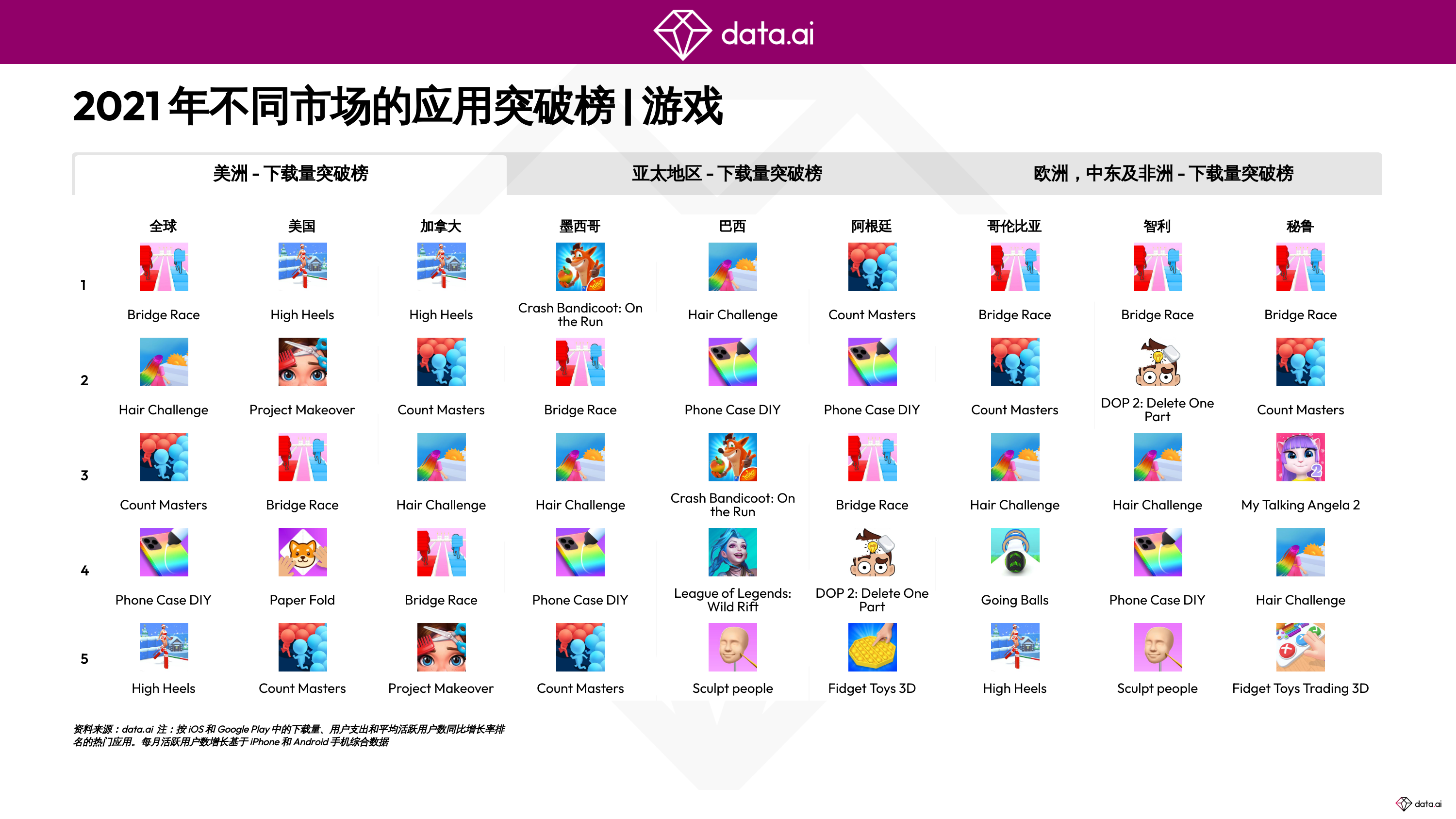 - 在 2019 年至 2021 年期间,游戏下载量增加了 149 亿次(+22%),到达 829.8 亿次